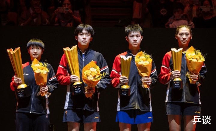 本站比赛,国乒最初报名了王楚钦孙颖莎,后面又有4个组合凭借东道主外卡入围。5个组合中有3个打进了半决赛,最后王楚钦孙颖莎这对老搭档默契登顶,拿下了赛事第一冠。