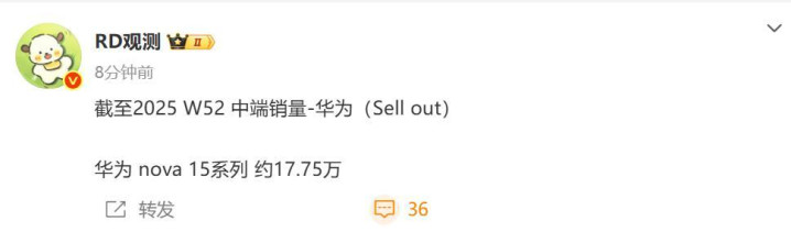 华为nova15系列作为华为2025年压轴新机,上市后到底表现如何呢?根据第三方博主“RD观测”提供的W52国内手机销量TOP30机型,华为nova15系列3款机型全部冲进前30,其中nova15前十,nova15Pro前二十。华为nova15系列2025年12月25日上市,W52销售天数为4天,3款机型全进入前30,这表现确实不错,那么华为nova15系列4天到底卖出了多少?